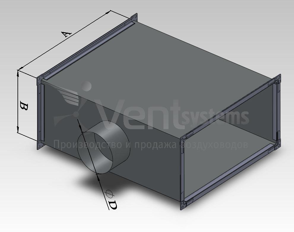 Прямоугольные воздуховоды Фасонные изделия Тройник прямоугольного сечения с круглой врезкой