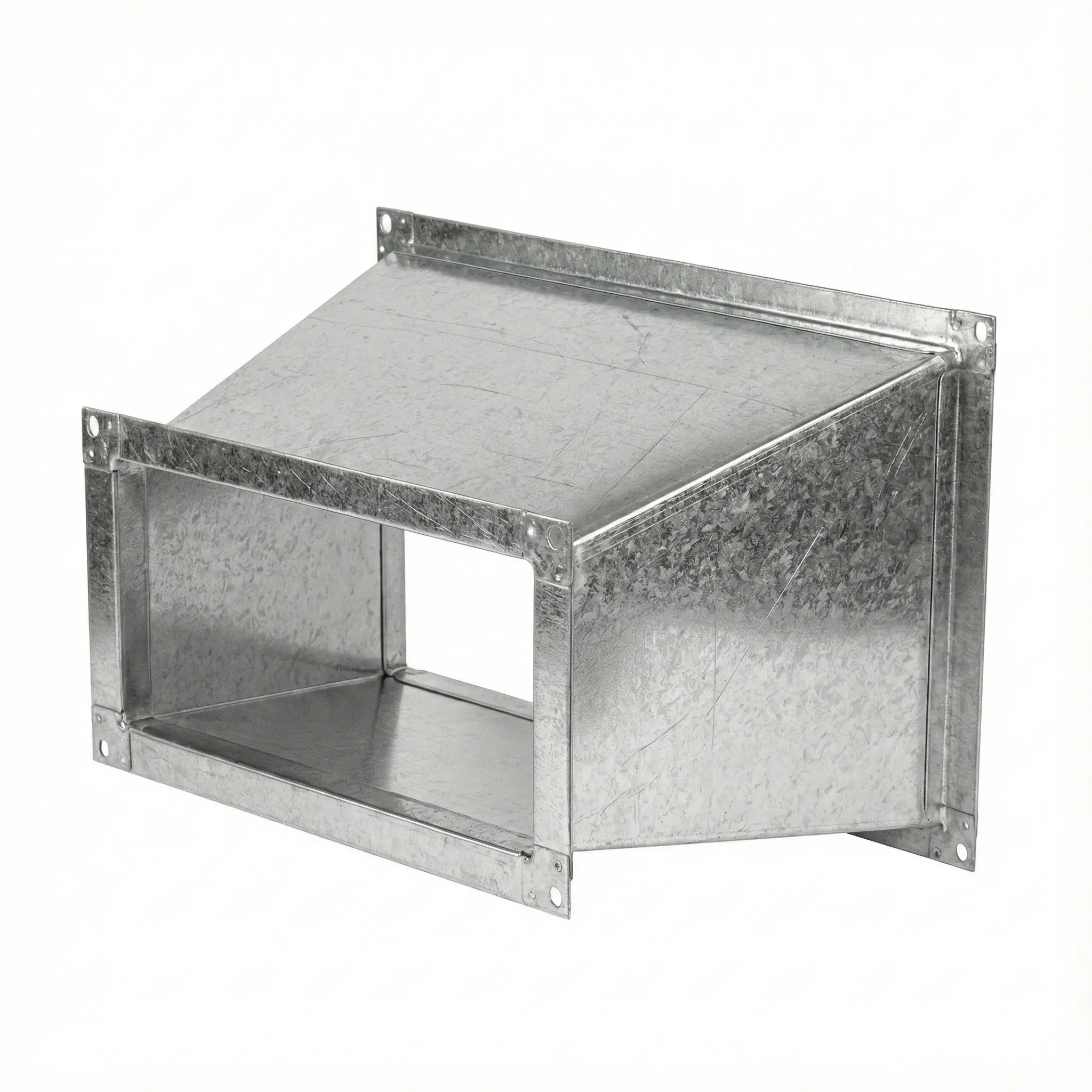 Переход прямоугольного сечения предназначен для соединения воздуховодов различного размера в системах общеобменной вентиляции и кондиционирования. Изделие обеспечивает герметичную стыковку каналов без утечек воздуха и сохранение проектной конфигурации вентиляционной трассы.