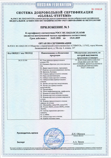Качество продукции — приоритет завода «ВентСистемс». Все выпускаемые изделия соответствуют требованиям ГОСТ 14918-2020 и собственных Технических условий ТУ 28.25.12-001-5009141608-2025. Наше производство прошло процедуру обязательной и добровольной сертификации, что подтверждает безопасность и надежность вентиляционных систем.
